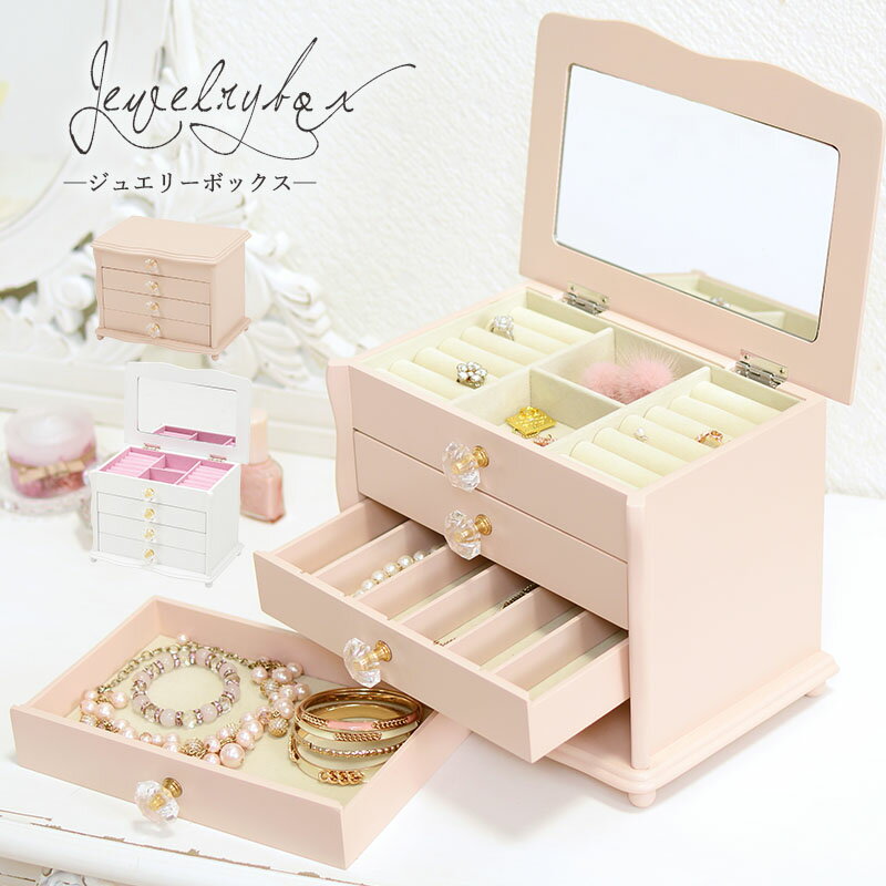 送料無料 コンパクト ジュエリーボックス アクセサリーボックス 完成品 可愛い 大容量 アクセサリーケース ジュエリーケース アクセサリー収納 アクセサリーケース 引き出し小物ケース ネックレス かわいい ミラー付 おしゃれ 誕生日 プレゼント ピンク MUD-6888PI