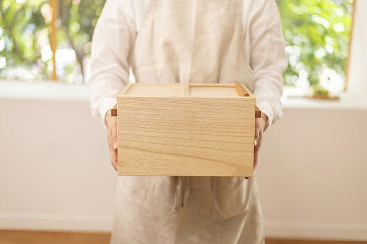 サイズ(約):外寸=奥行32.5×巾26.8×高さ17.8cm 重量(約):0.8kg 容量(約):5kg 材質:本体=国産桐材 取っ手:桜材(国産) 表面仕上げ:蜜ロウ 桐材の変色について 桐材は製作直後だと白い色をしていますが、年数を重ねるにつれ薄いグレーや茶色に変色してきます。