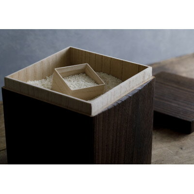 また塗料による着色ではなく木を焼くことにより表面を黒く仕上げており人にも食品にも環境にも優しく安心・安全な米びつです。